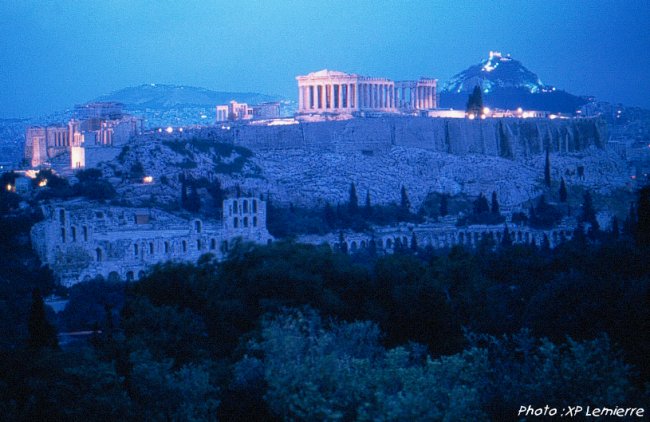 L'Acropole à la tombée de la nuit